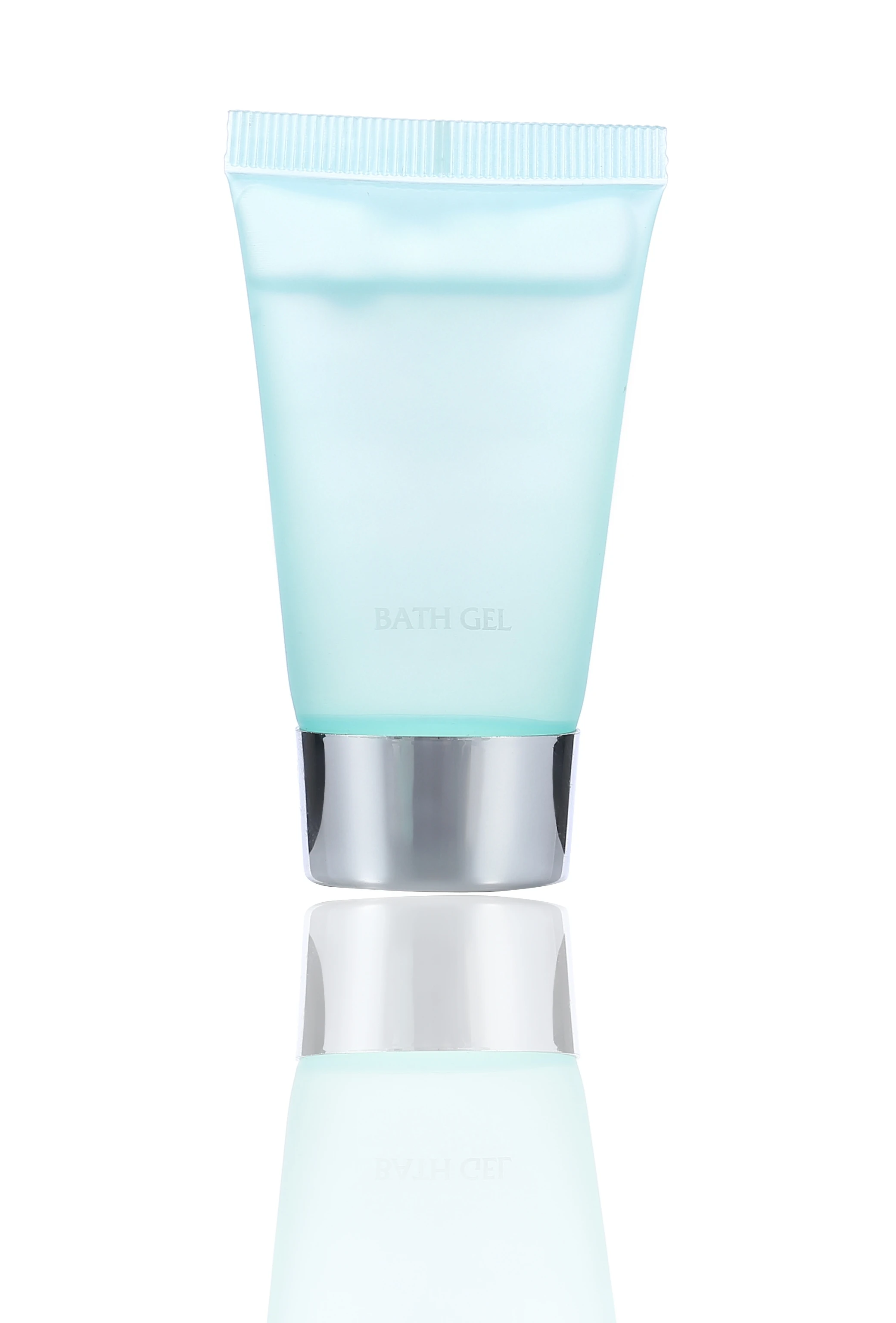 Blue bath gel tube designed for premium hotels, deep cleaning and freshness.